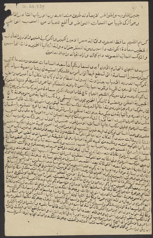 Collection of draft letters by ʿAbd al-Raḥmān ibn Muḥammad ʿIllaysh (1840-1921), written to the Egyptian authorities, British Occupation officials and the Italian Government Or. 20.539