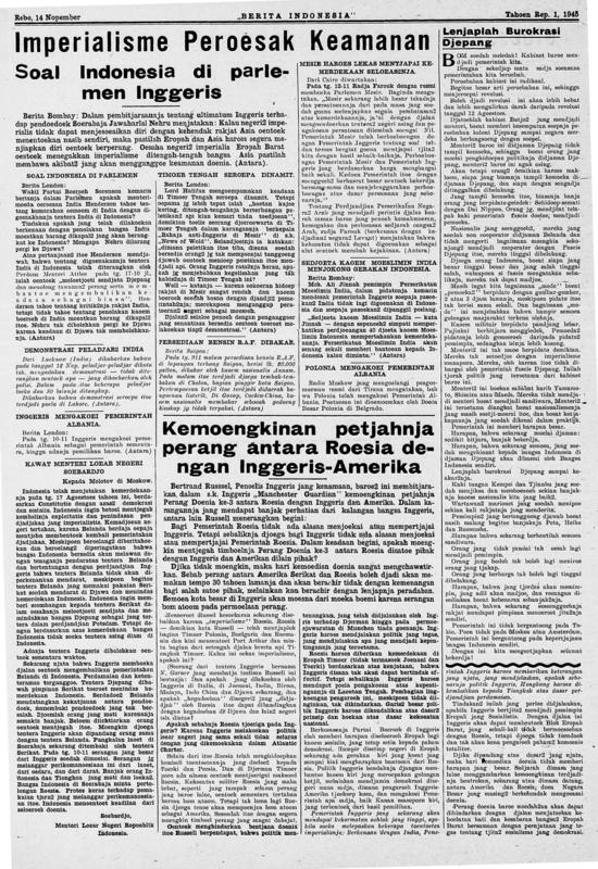 Berita Indonesia 1945-1946 - 14-11-1945