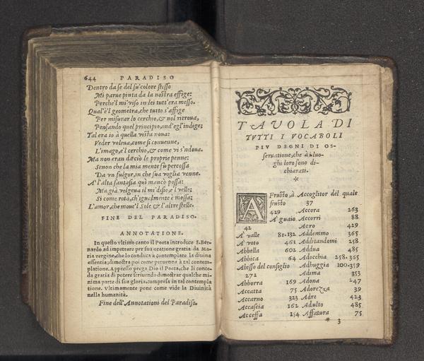 Dante, con nvove et vtili ispositioni. : aggiuntoui di più vna tavola di tutti i vocaboli più degni d'osservatione, che a i luoghi loro sono dichiarati DANTE 2 F 11