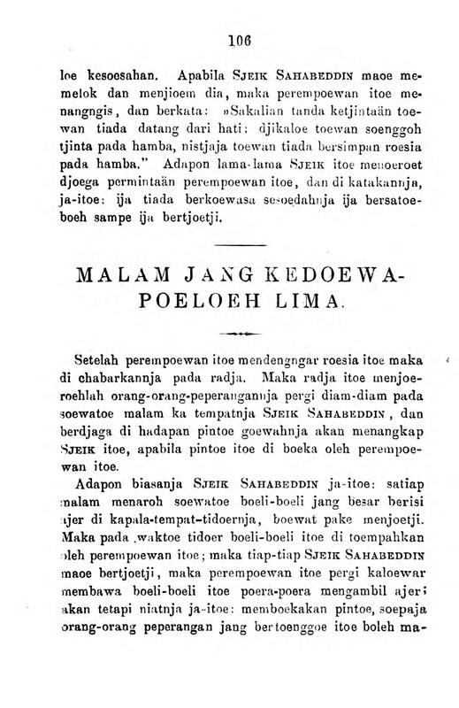 Hikajat seriboe soewatoe malam, ja-itoe tjeritera-tjeritera Arab / 8203 F 71-72