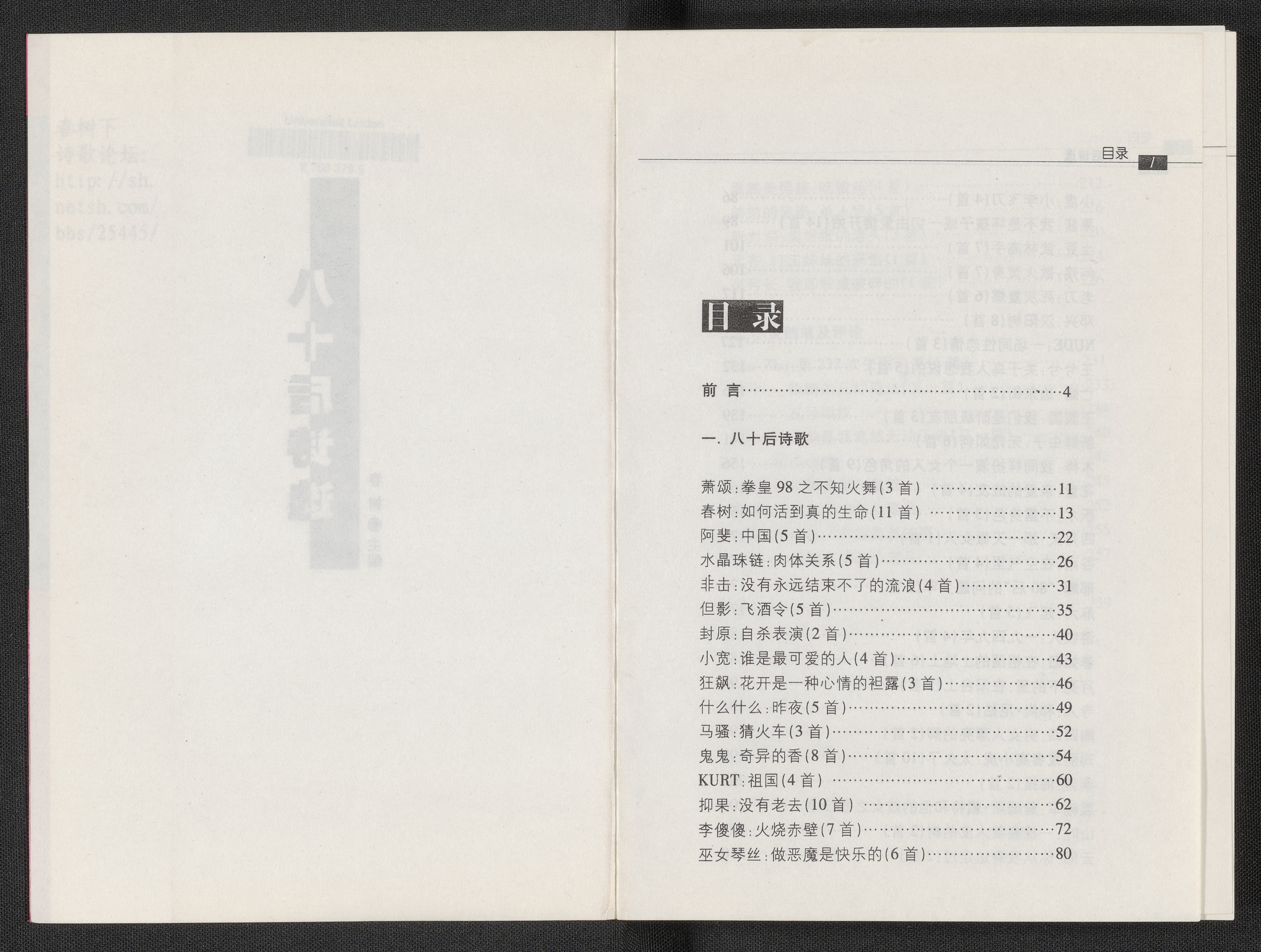 Ba shi hou shi xuan 八十后诗选 - 1