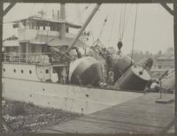 Het lichten van een gezonken KPM-sleepboot in Nederlands-Indië