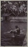 G.E. Raket (geheel links) in het zwembad te Solo