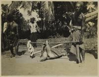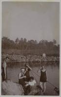 G.E. Raket (geheel links) tijdens een tochtje naar het zwembad te Solo