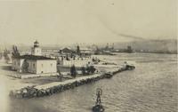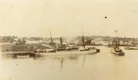 Twee stoomschepen, vermoedelijk de Oceaniëstomer s.s. Ventura en een Pilokstomer te Sydney