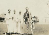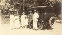 Europees gezelschap bij een auto, vermoedelijk bij Honolulu