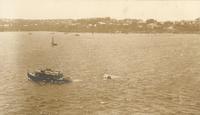 Zwemmer Norman Ross, wereldkampioen, vermoedelijk in de haven van Honolulu