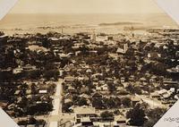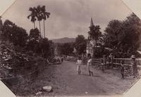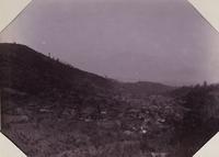 Uitzicht op de Tjiliwoeng en de Salak achter Hotel Bellevue te Buitenzorg