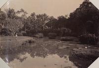 Boom en Victoria Regia in 's Lands Plantentuin te Buitenzorg