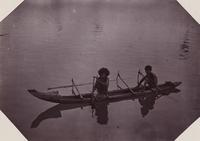 Man en een jongen in een kano, vermoedelijk op Java