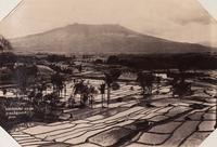 Rijstvelden met op de achtergrond de Gede te Sindanglaja bij Tjiandjoer
