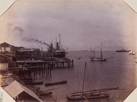 Kade en woonhuizen in Njamploengan te Soerabaja
