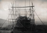 Restauratie van het zuidelijke hoftempeltje van het Tjandi-complex Loro Djongrang bij Prambanan