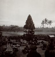Reconstructie van de zuidelijke toegangspoort van het Tjandi-complex Loro Djongrang bij Prambanan
