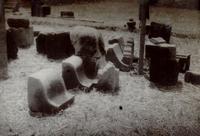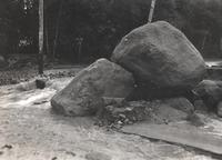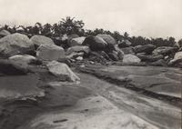 Enkele keien van de Goenoeng Merapi, meegenomen door de bandjir van Batang, tussen Jogjakarta en Magelang