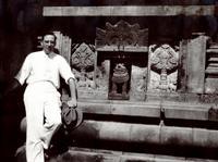 Praalbed met de inspecteur van de Oudheidskundige Dienst, ingenieur V. R. van Romondt (l.) te Cheribon