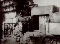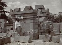 Bakstenen poort met de inspecteur van de Oudheidskundige Dienst, ingenieur V. R. van Romondt te Cheribon