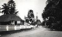 Weg naar Tjandi Mendoet (midden) nabij de Boroboedoer bij Magelang, links een rooms-katholiek klooster