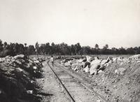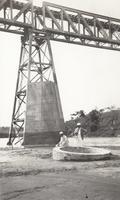 Europeanen aan de voet van de spoorbrug bij Sentolo bij Jogjakarta