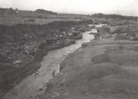 Nieuw uitgeslepen bed door de bandjir van Batang op de Merapi tussen Jogjakarta en Magelang