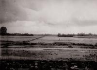 Schade door de bandjir van Batang langs een kampong tussen Jogjakarta en Magelang
