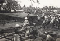 Door de bandjir van Batang weggeslagen spoorbrug van de N.I.S. tussen Jogjakarta en Magelang