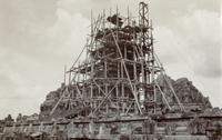 Restauratiewerkzaamheden van het Tjandi-complex Loro Djongrang bij Prambanan
