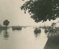 Monding van de Kali Mas te Soerabaja, op de achtergrond ligt Madoera