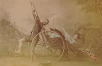 Japanse vrouw in omgevallen jinrikisha te Japan