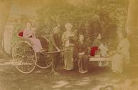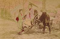 Jinrikisha met Japanse vrouwen te Japan