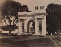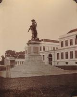 KITLV A752 - Monument aan de Jacatraweg te Batavia ter nagedachtenis van het (vermoedelijke) verraad van Pieter Erberveld in 1722, met Nederlandse en Javaanse tekst