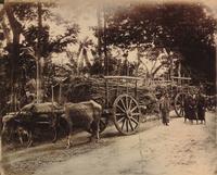 Suikerrietvervoer per ossenkar op Java