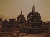 Fotograaf Kassian Céphas bij een stupa op de Boroboedoer bij Magelang